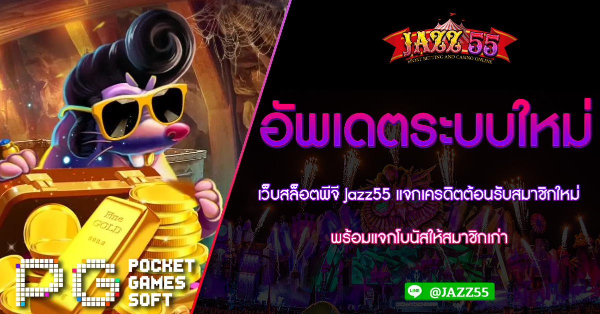 อัพเดตระบบใหม่ เว็บสล็อตพีจี Jazz55 แจกเครดิตต้อนรับสมาชิกใหม่ พร้อมแจกโบนัสให้สมาชิกเก่า